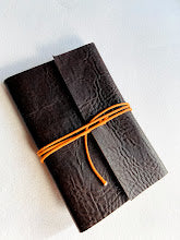 A beautifully handcrafted Journal Designed, especially for Artists. A tiny Journal made with love for miniature painting. One can journal their thoughts and creative ideas into this journal and preserve them as a souvenir. It's tiny so it's easily portable. To give it an artsy look it is secured with a thread and a charm
