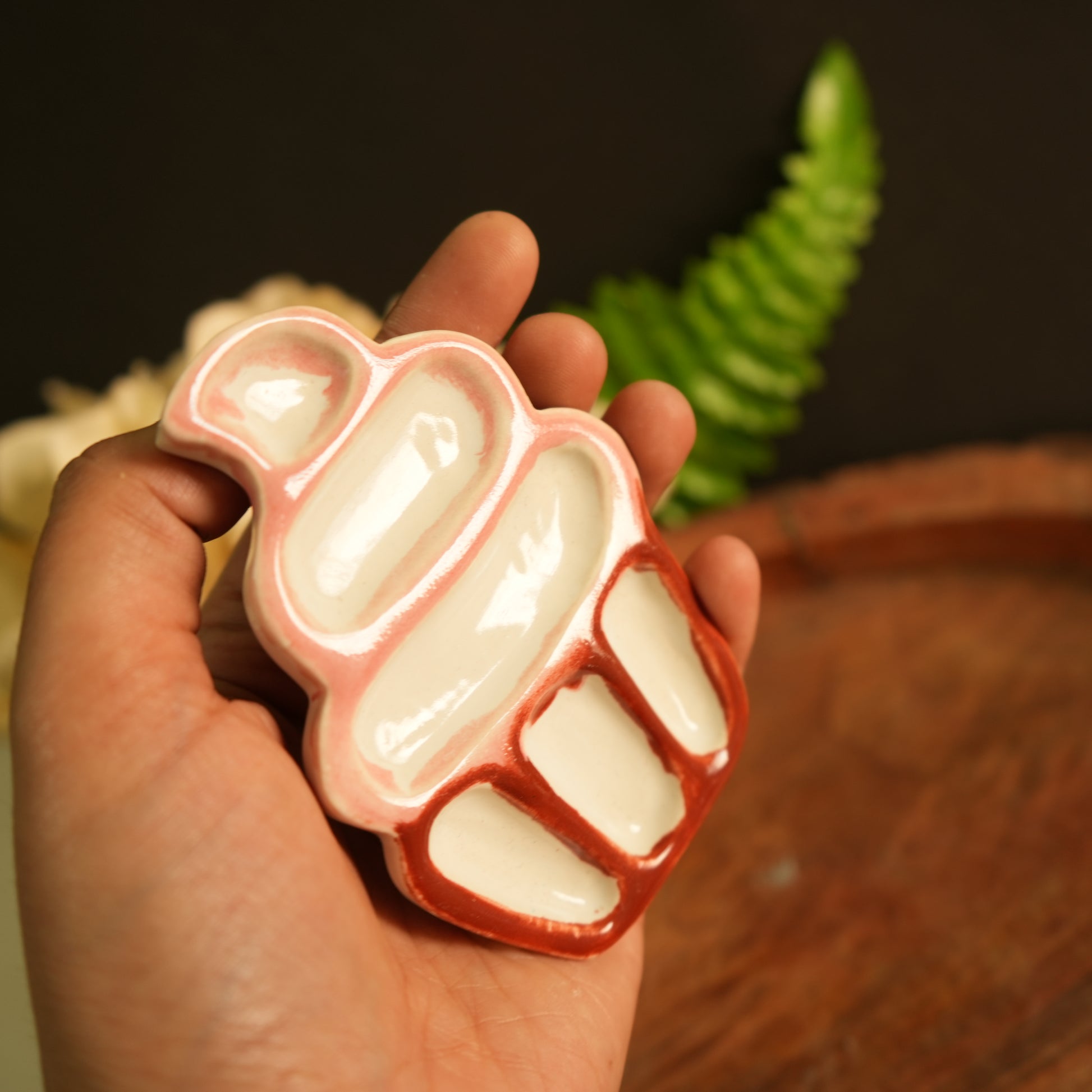 A unique shape ceramic palette handmade with love.