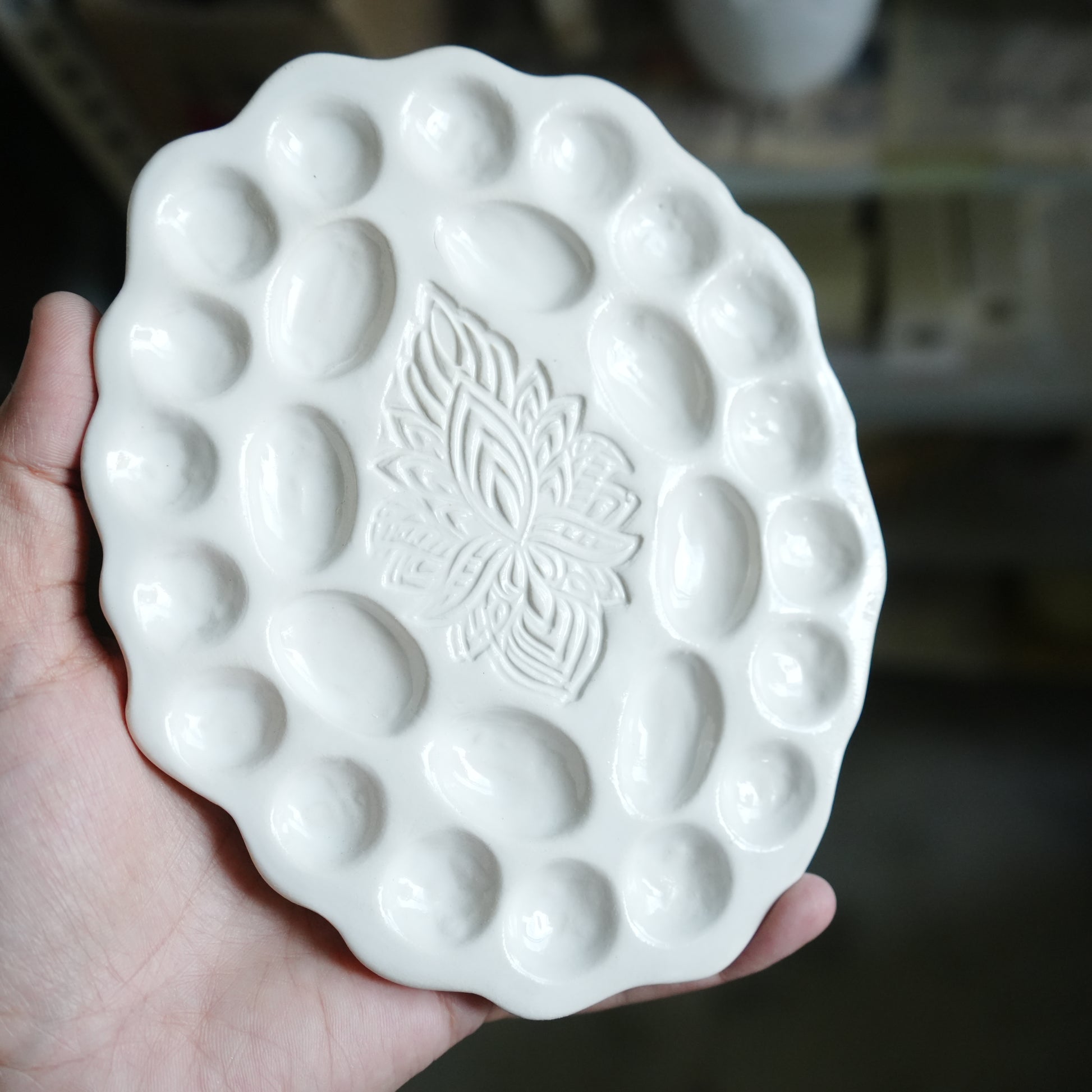 Hamsa Impression Ceramic Palette - White finish, Artist gifts, Mytinyjournal.co