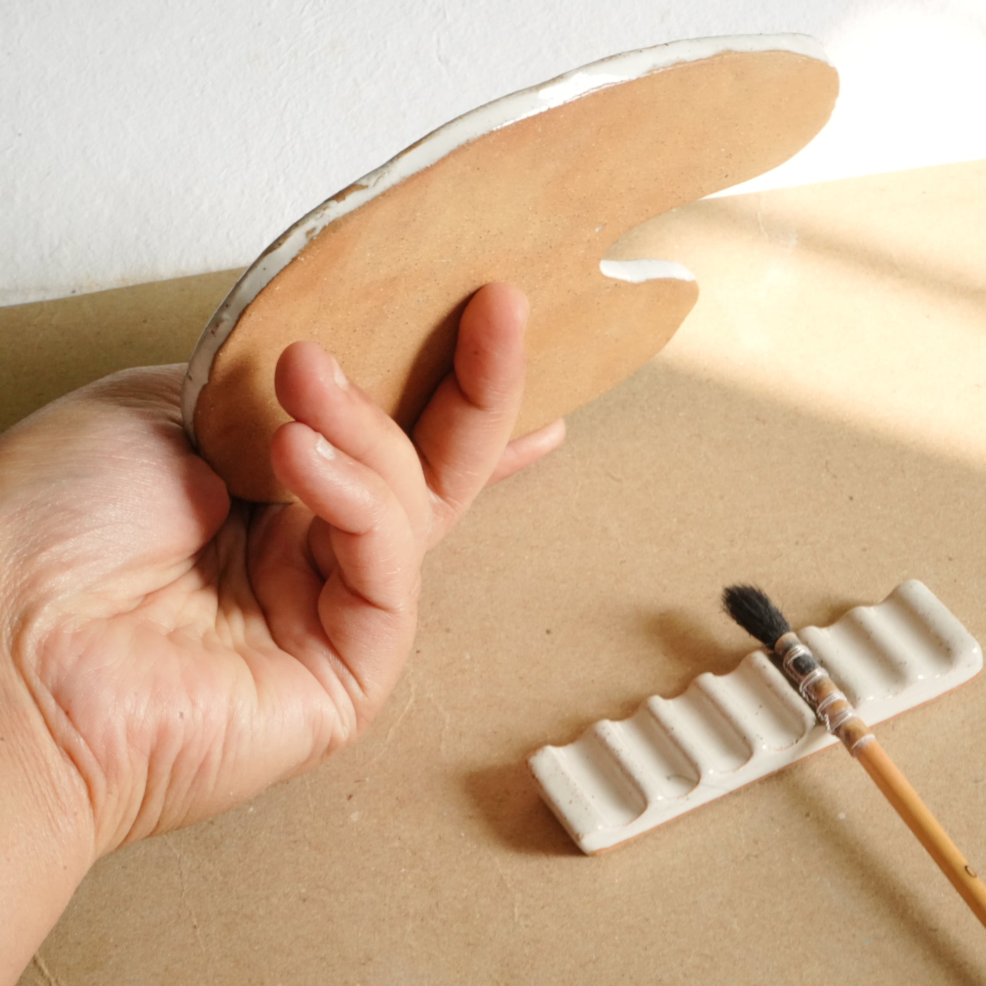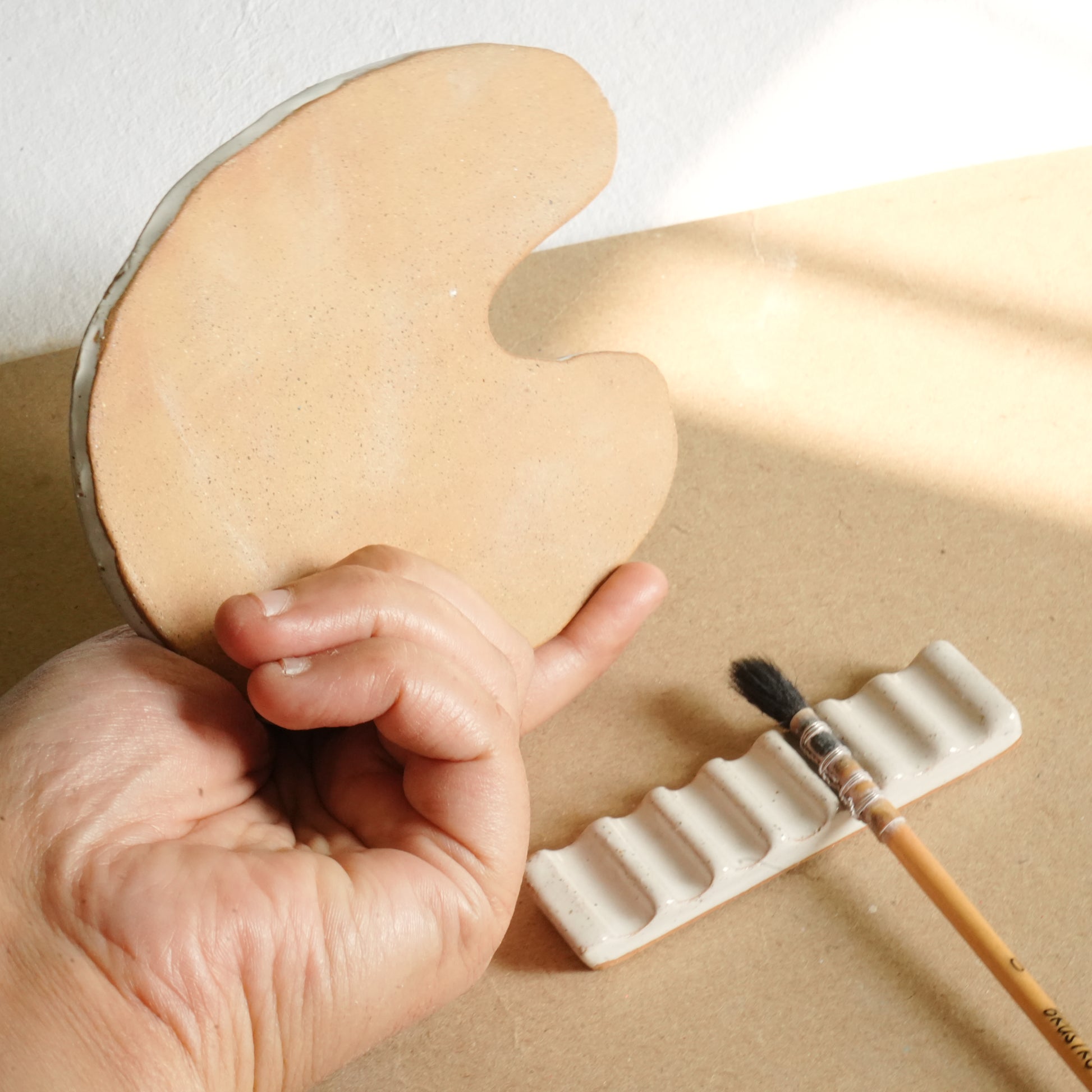 A unique shape ceramic palette handmade with love.